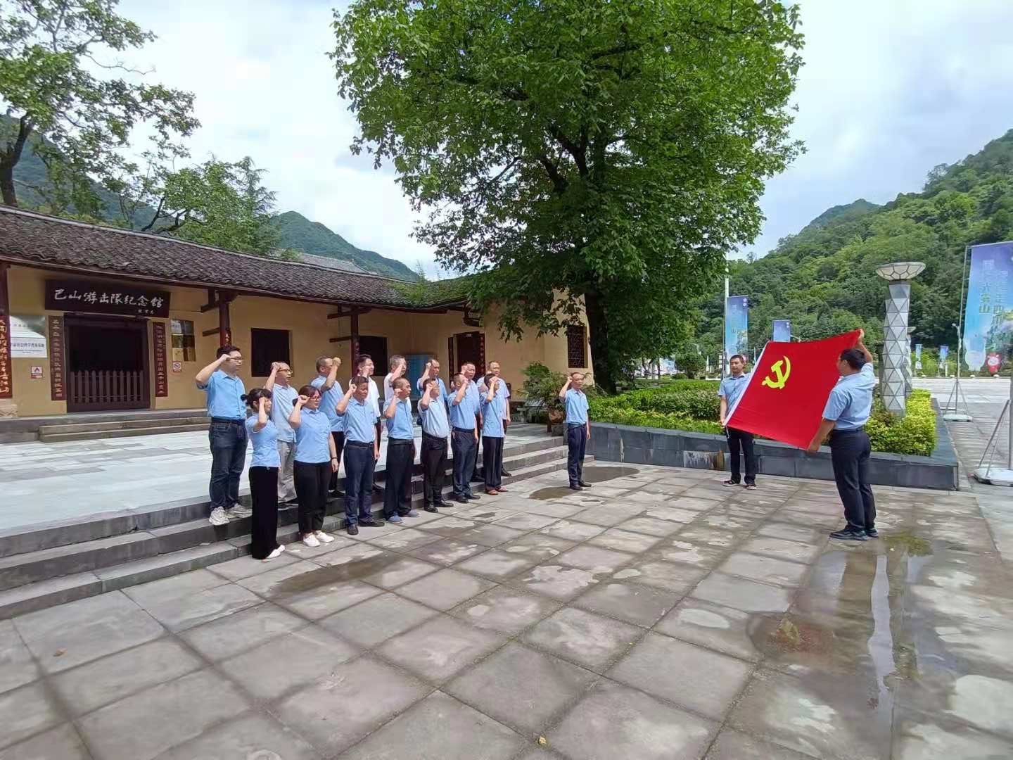 活動現(xiàn)場,同志們在講解員的帶領(lǐng)下參觀了巴山游擊隊紀(jì)念館,展廳內(nèi)每一件展品、每一幅照片、每一段文字記載,生動再現(xiàn)了當(dāng)年革命先烈追求民族獨(dú)立和解放而浴血奮戰(zhàn)的英勇歷史。講解員生動講述著感人肺腑的紅色故事,讓大家仿佛置身于炮火連天的歲月之中,深深感受到革命先烈們戰(zhàn)斗的艱辛,為黨犧牲的決心,革命必勝的信心。在巴山游擊隊紀(jì)念館前,公司黨總支書記、董事長李鵬帶領(lǐng)全體黨員重溫入黨誓詞,回顧入黨心路歷程,齊唱國歌,歌頌祖國。